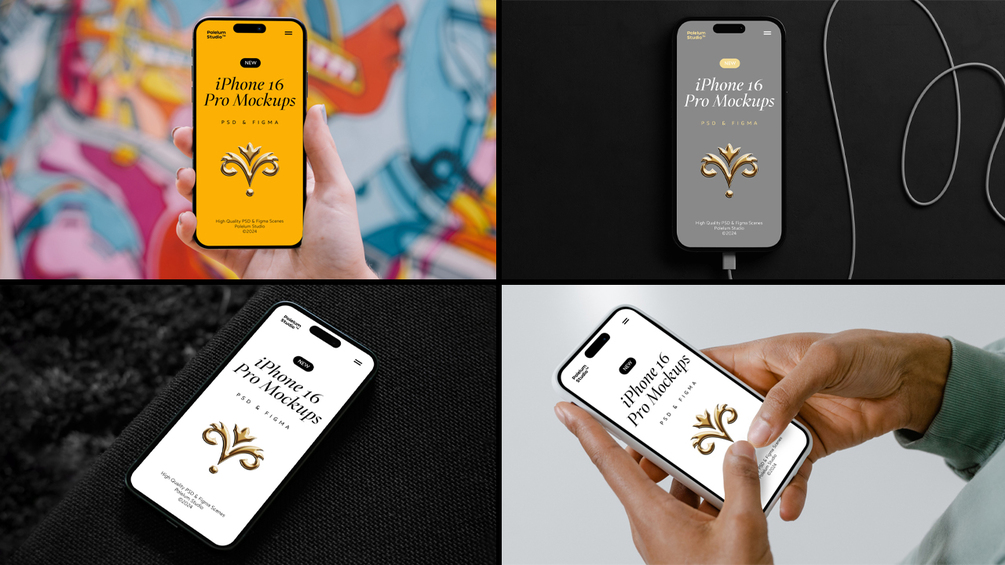 - Includes 50 iPhone 16 Pro Mockups — PSD & Figma high-quality files,